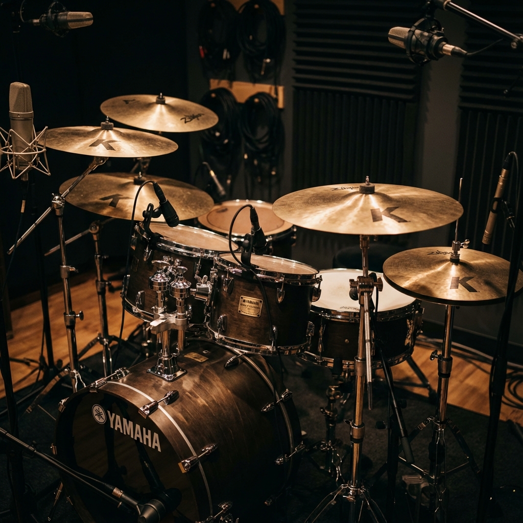 Yamaha Maple Custom z precyzyjnie nastrojonymi bębnami dla pełnego, ciepłego brzmienia.